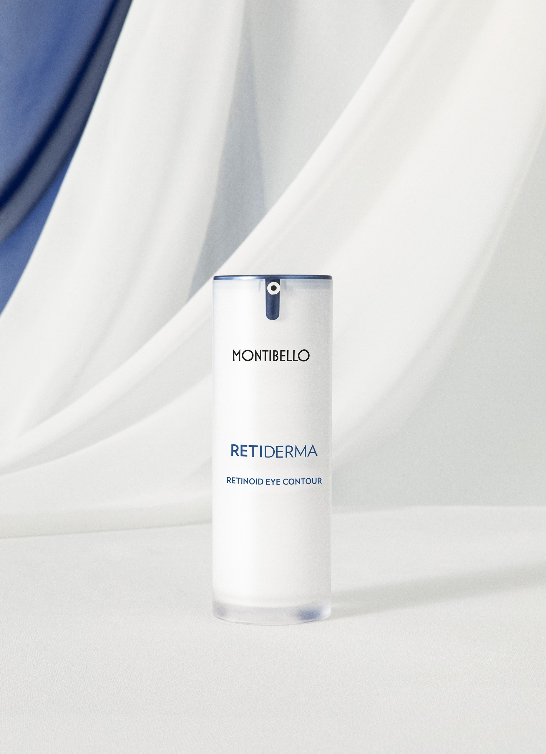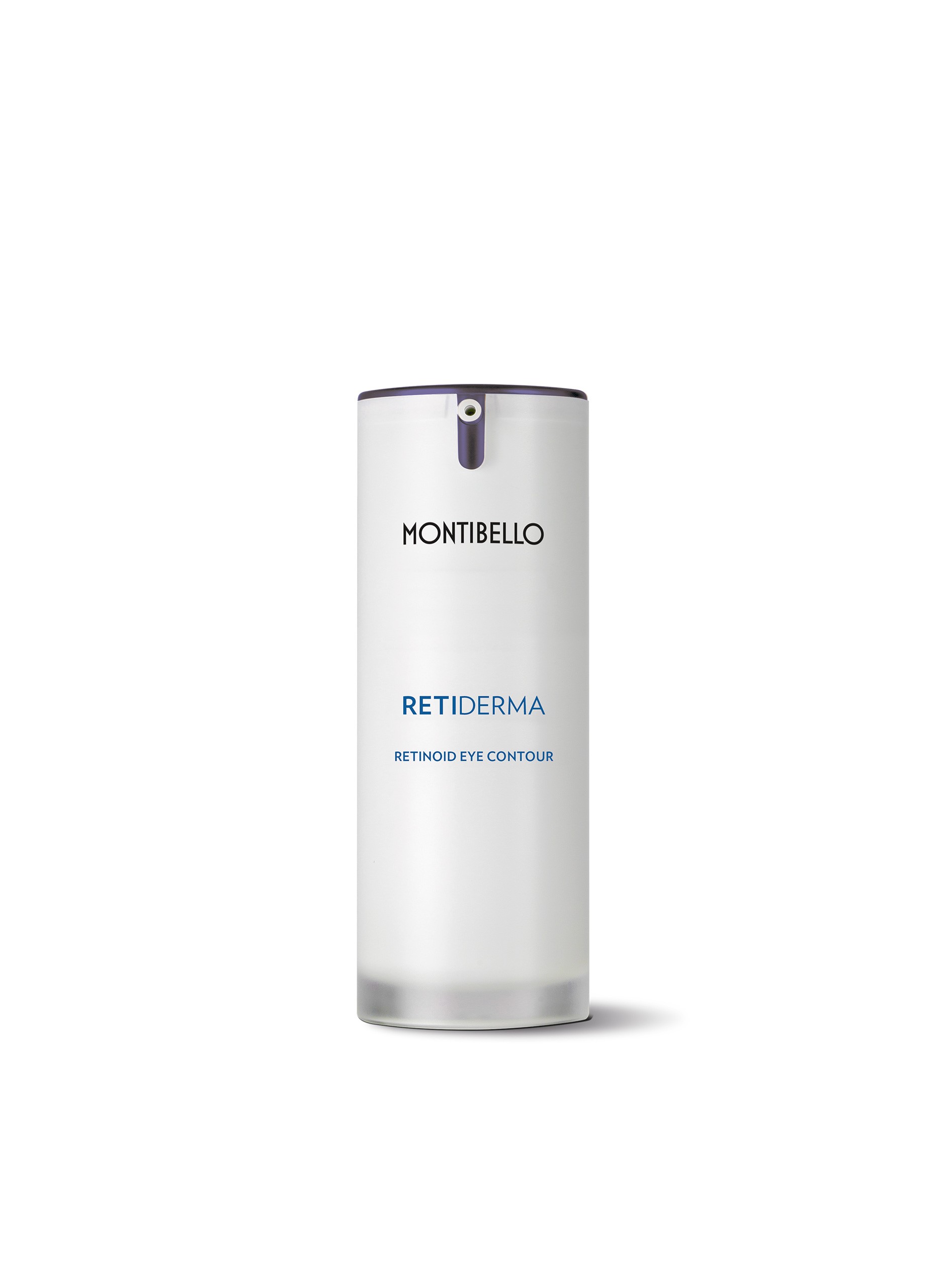 RETIDERMA MONTIBELLO RETINOID EYE CONTOUR es un tratamiento específico para el contorno de ojos formulado con retinoides de última generación, diseñado para tratar los signos del envejecimiento en una de las zonas más delicadas del rostro.